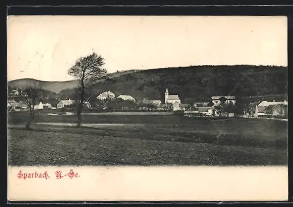 AK Hinterbrühl, Sparbach, Ortspanorama mit der Kirche