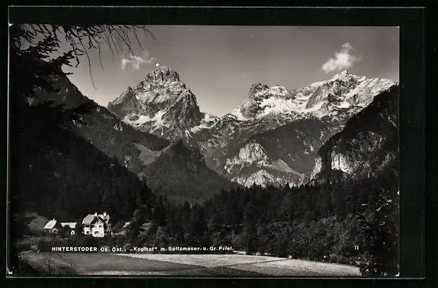 AK Hinterstoder /Ob.-Öst., Hotel Koglhof mit Spitzmauer und Gr. Priel