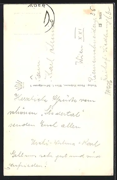 alte Ansichtskarte, gelaufen, Briefmarke entfernt, rückseitig Oberflächenschaden, guter Zustand