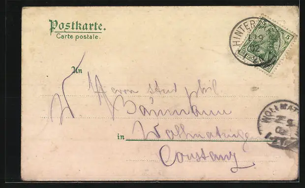 alte Ansichtskarte, gelaufen 1902, Eckknick li. oben, guter Zustand