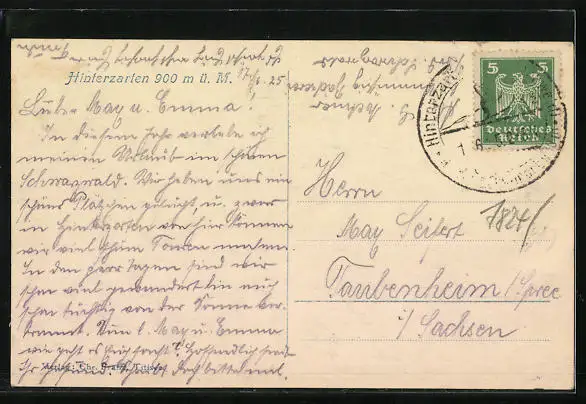 alte Ansichtskarte, gelaufen 1925, Einrisse u. Bugspur oben li., Stempelspur, guter Zustand