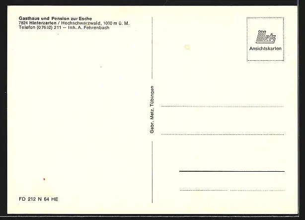 AK Hinterzarten /Schwarzwald, Gasthaus und Pension zur Esche, Inh. A. Fehrenbach