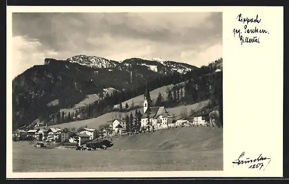 AK Hippach /Zillertal, Ortspartie mit Kirche geg. Peuken