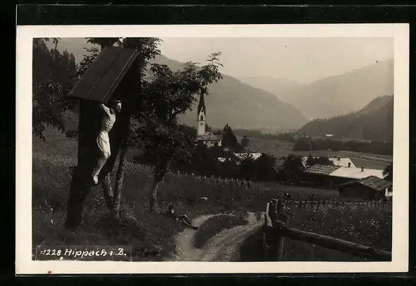 AK Hippach i. Z., Ortsansicht mit Flurkreuz