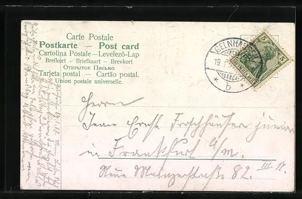 alte Ansichtskarte, gelaufen, Einriss oben Mitte, guter Zustand