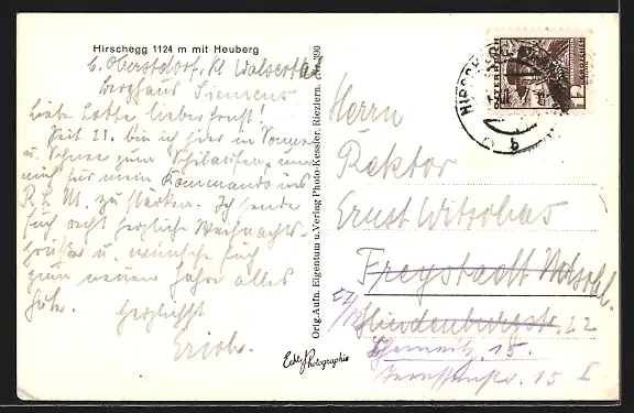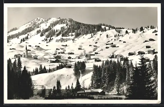 AK Hirschegg, Ortsansicht mit Heuberg im Winter