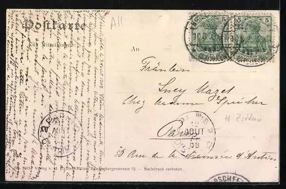 alte Ansichtskarte, gelaufen 1908, guter Zustand
