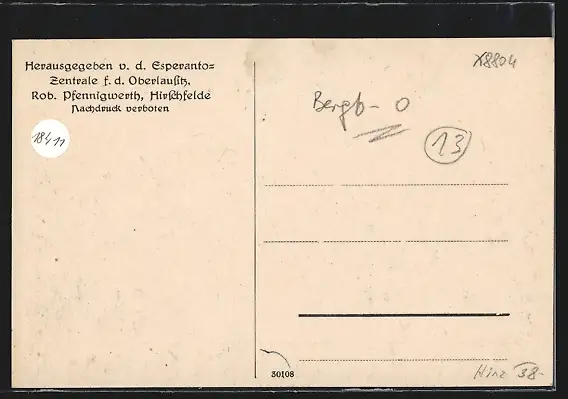 alte Ansichtskarte, ungelaufen, rückseitig Klebe- und Papierreste, guter Zustand