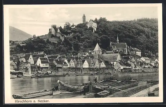 AK Hirschhorn / Neckar, Ortsansicht mit Neckarpartie und Burgruine
