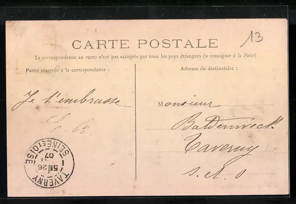alte Ansichtskarte, gelaufen 1907, Eckknick oben rechts, guter Zustand