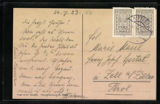 gelaufen 1923, Bugspur oben mittig, guter Zustand