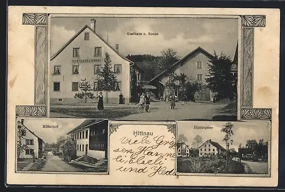 AK Hittnau, Gasthaus zur Sonne, Hintergasse, Mitteldorf