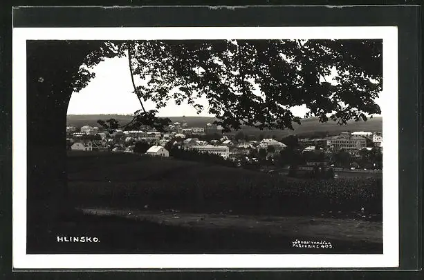AK Hlinsko, Blick von einem Baum auf den Ort