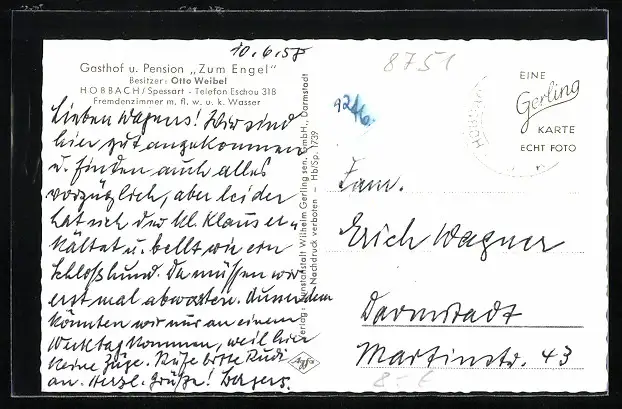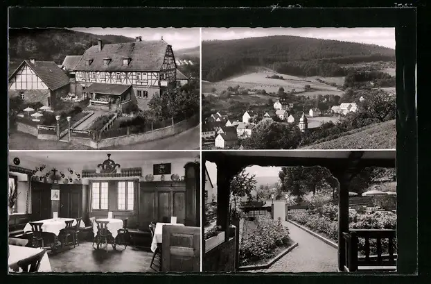AK Hobbach / Spessart, Panorama und Gasthof-Pension Zum Engel