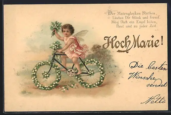 AK Hoch Franz, Elfe auf dem Maiglöckchen-Fahrrad