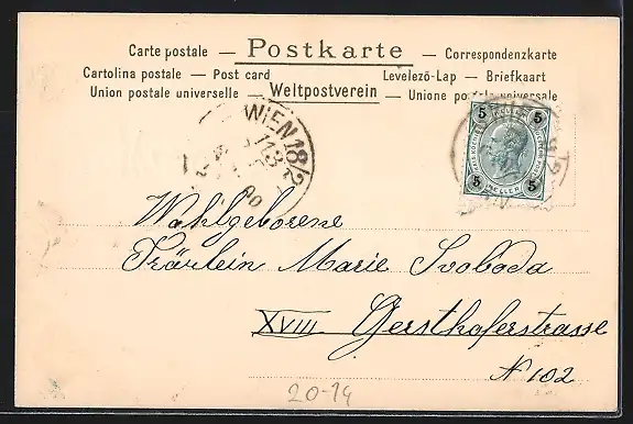 alte Ansichtskarte, gelaufen 1900, guter Zustand