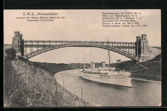 AK Hochbrücke bei Levensau, SMY Hohenzollern