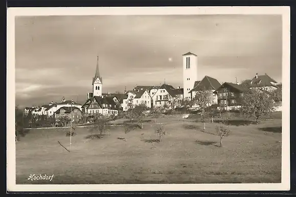 AK Hochdorf, Ortsansicht mit Kirchen