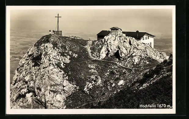 AK Hochfelln, Hütte am Gipfelkreuz