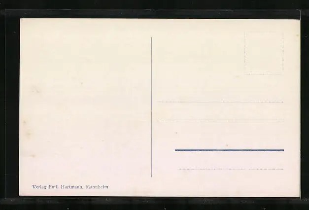 Personenbezogene Daten auf der Rückseite der Karte wurden durch blauen Textmarker unkenntlich gemacht. Die blauen Stellen sind auf die Vorderseite durchgeweicht und wirken sich negativ auf das Postkartenfoto aus