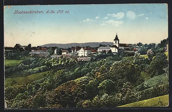 AK Hochneukirchen /N.-Oe., Ortsansicht mit Kirche