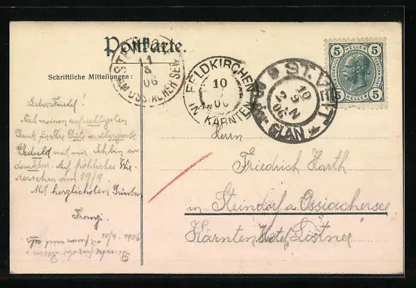 alte Ansichtskarte, gelaufen 1906, guter Zustand