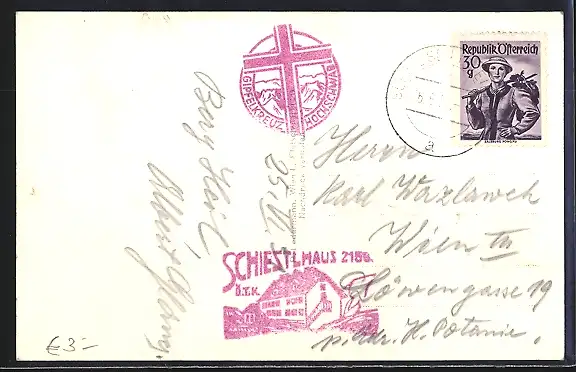 Personenbezogene Daten auf der Rückseite der Karte wurden durch blauen Textmarker unkenntlich gemacht. Die blauen Stellen sind auf die Vorderseite durchgeweicht und wirken sich negativ auf das Postkartenfoto aus