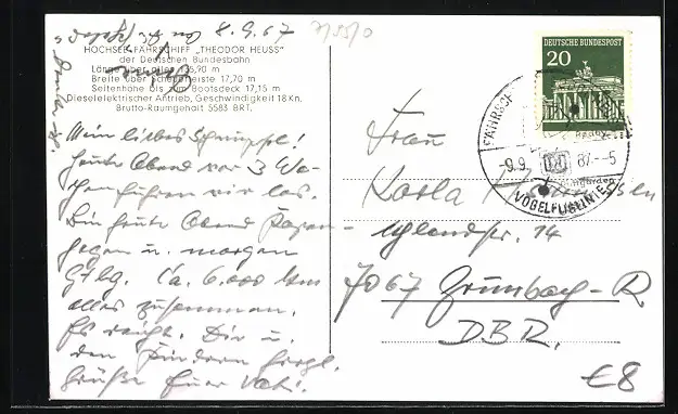 AK Hochsee-Fährschiff Theodor Heuss in Fahrt