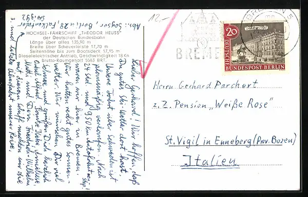 AK Hochsee-Fährschiff Theodor Heuss macht Fahrt