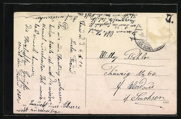alte Ansichtskarte, gelaufen 1911, Briefmarke entfernt, Eckknicke re., guter Zustand