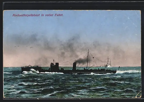 AK Hochseetorpedoboot in voller Fahrt