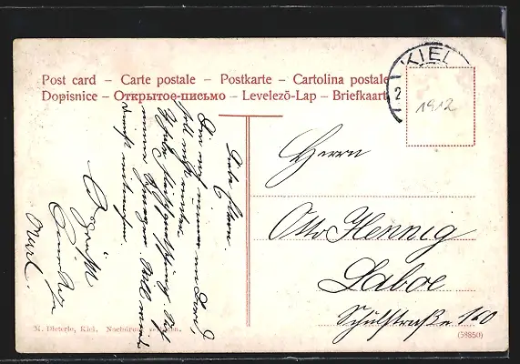 alte Ansichtskarte, gelaufen, Briefmarke entfernt, guter Zustand