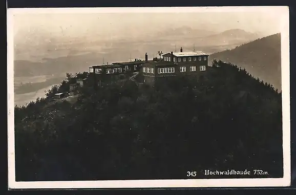 AK Hochwaldbaude, Berghütte mit Panorama