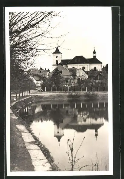 AK Hochwesseln, Blick zur Kirche vom Teich aus