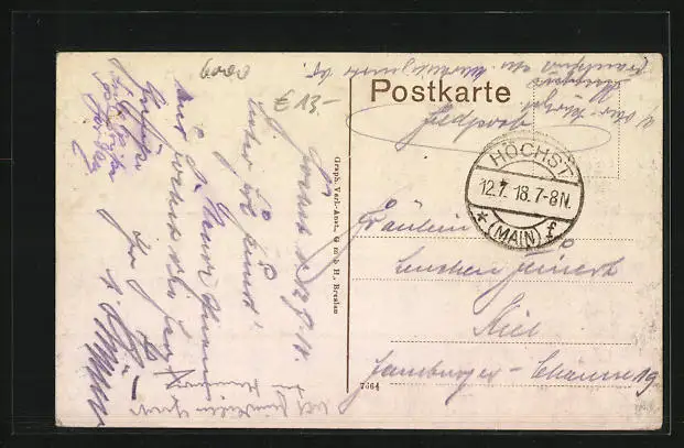 alte Ansichtskarte, gelaufen 1918 als Feldpost, Abriebspur re. unten, guter Zustand