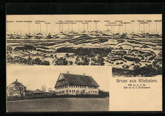 AK Höchsten, Ortsansicht mit Alpen, Gasthaus