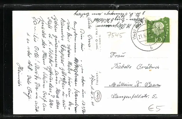 gelaufen 1960, rückseitig Oberflächenschaden, Eckknick li. oben, guter Zustand