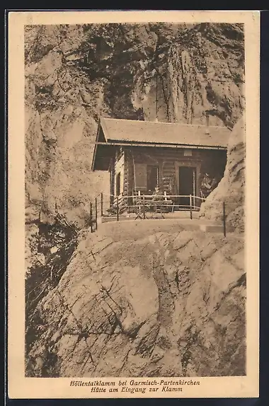 AK Höllentalklamm-Eingangshütte, Ansicht der Berghütte