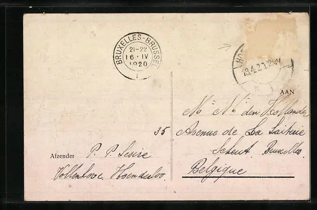 alte Ansichtskarte, gelaufen 1920, Briefmarke entfernt, rückseitig Oberflächenschaden, guter Zustand