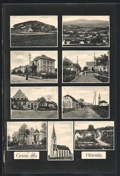 AK Hörnitz, Kirche, Ortsansicht und Strassenpartien