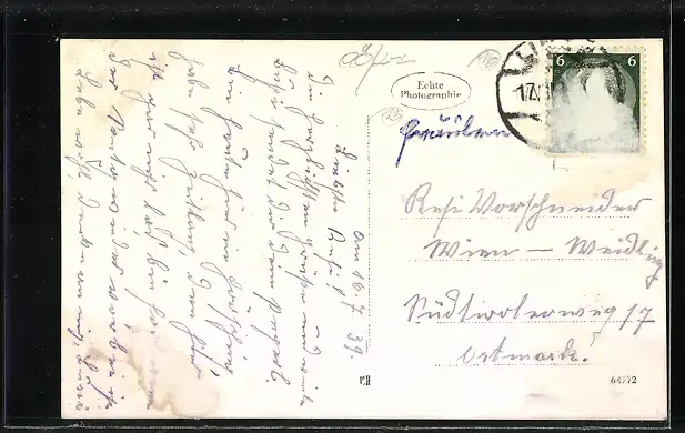 alte Ansichtskarte, gelaufen 1939, Briefmarke entfernt, rückseitig Klebe- und Papierreste, guter Zustand
