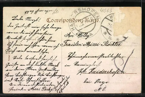 alte Ansichtskarte, gelaufen 1911, Briefmarke entfernt, rückseitig Oberflächenschaden, guter Zustand