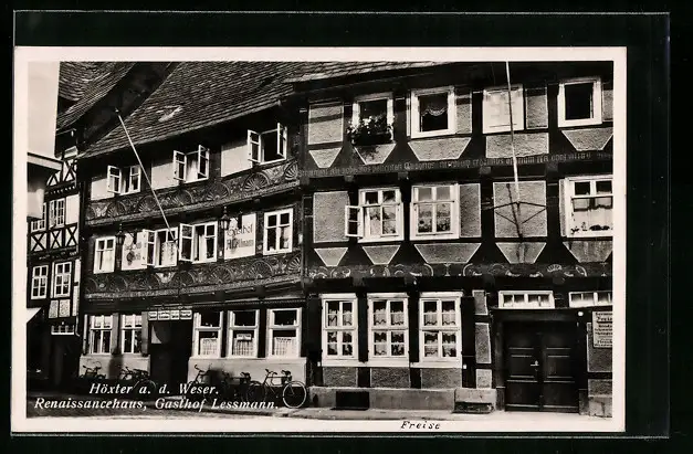 AK Höxter /Weser, Gasthof Lessmann / Renaissancehaus, Strassenansicht