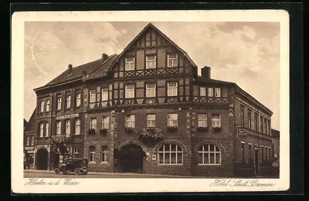 AK Höxter a. d. Weser, Hotel Stadt Bremen mit Strassenpartie