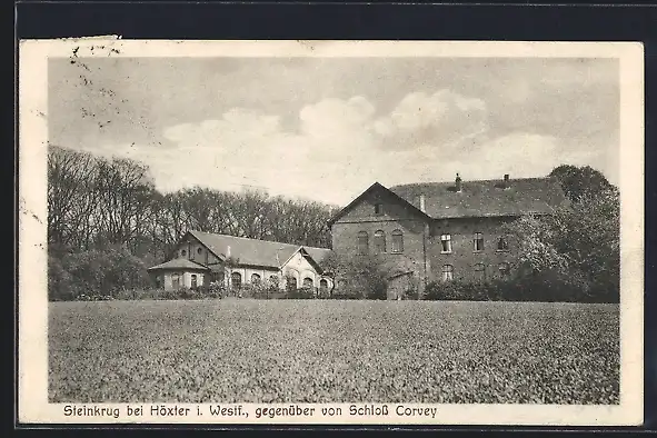 AK Höxter i. Westf., Gasthaus Steinkrug, Ansicht vom Feld aus
