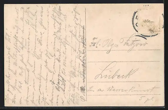 alte Ansichtskarte, gelaufen, Briefmarke entfernt, rückseitig Oberflächenschaden, guter Zustand