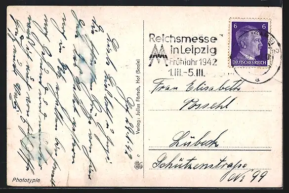 alte Ansichtskarte, gelaufen 1942, Einriss unten re., guter Zustand