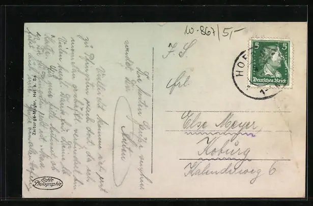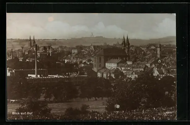 AK Hof, Ortsansicht aus der Vogelschau