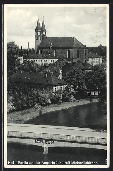 AK Hof, Partie an der Angerbrücke mit Michaeliskirche