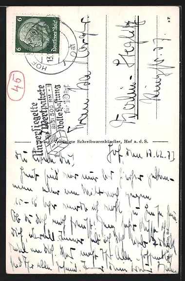 alte Ansichtskarte, gelaufen 1937, guter Zustand